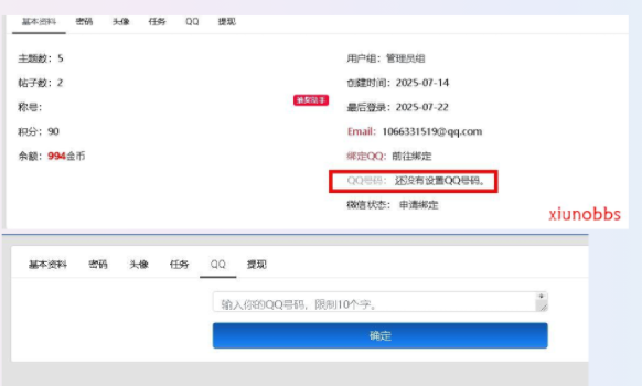 xiuno插件之QQ号码设置修改